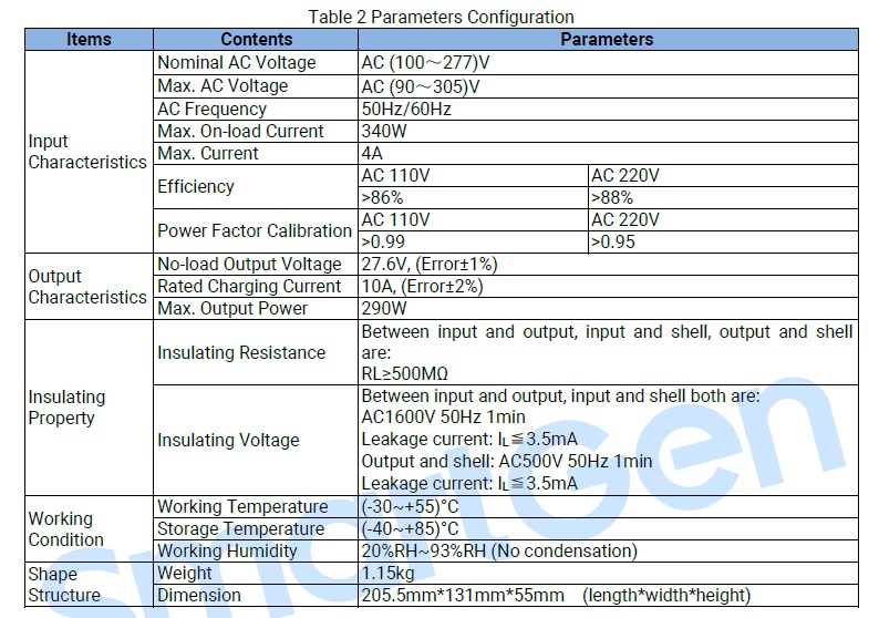 Chuyển đổi cấu trúc nguồn điện, dải điện áp xoay chiều đầu vào rộng, kích thước nhỏ, trọng lượng nhẹ, tỷ lệ hiệu quả cao ;