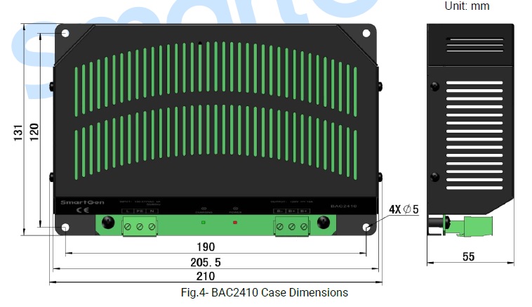 Quá trình sạc hai giai đoạn tự động (đầu tiên là dòng điện không đổi, sau đó là điện áp không đổi) được thực hiện theo đặc tính sạc của ắc quy lưu trữ để tránh sạc quá mức và kéo dài đáng kể tuổi thọ của ắc quy;