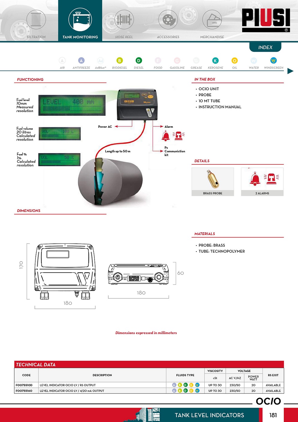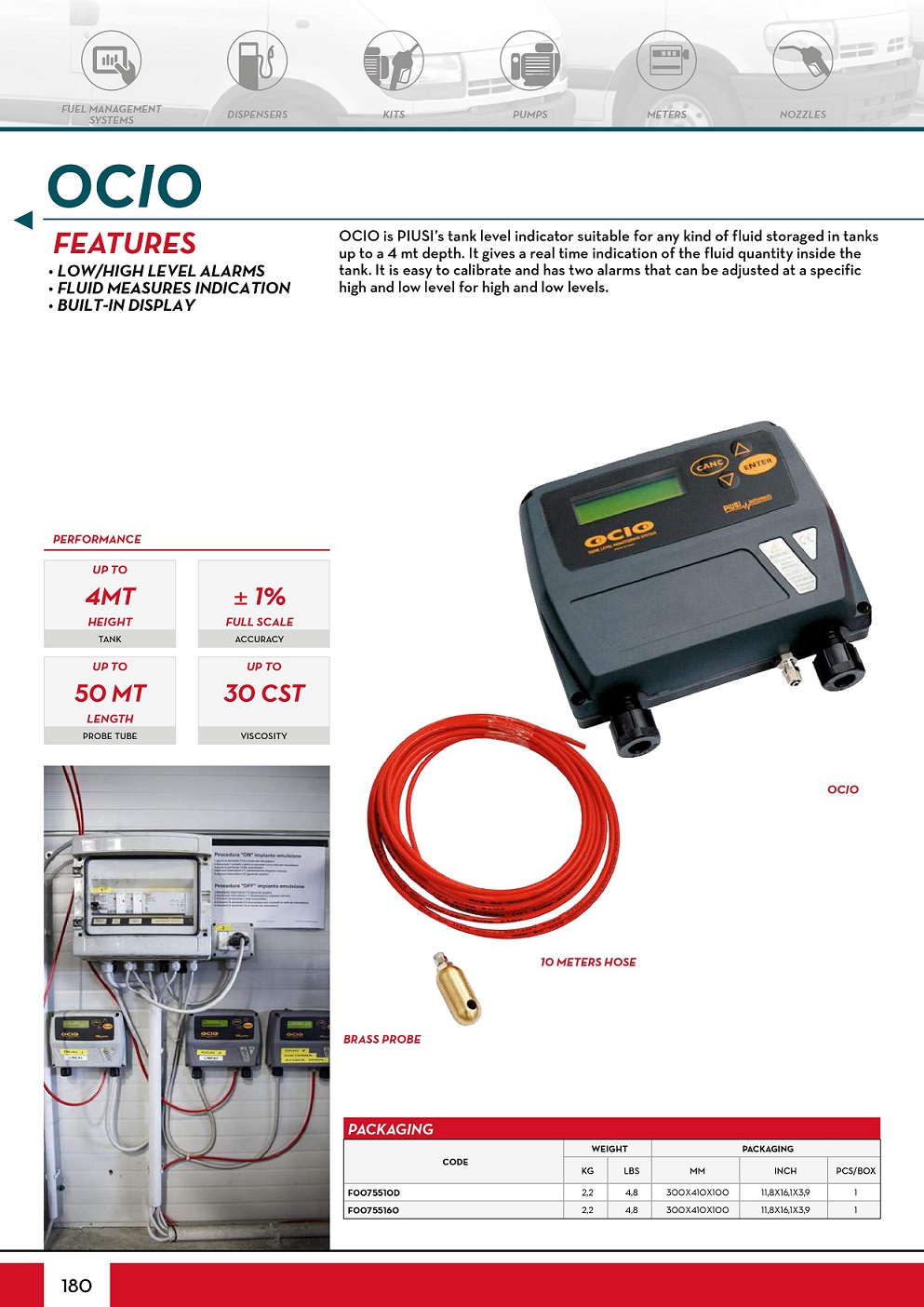 Thiết bị báo mức bồn dầu Piusi OCIO dùng để báo mức xăng, mức dầu, mức nhớt, mức nước hoặc các chất lỏng khác có trong bồn, giúp người quản lý biết được dung lượng còn lại trong bồn để có kế hoạch bổ sung thêm và kiểm soát các biến động của mức bồn dầu.